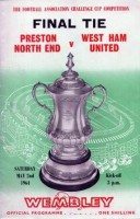 Very good condition programme from the 1964 FA Cup Final, Preston North End v West Ham United. The Hammers won 3-2 in a match that saw Prestons Howard Kendall become the then youngest person to play in a FA Cup Final at 17 years and 345 days.