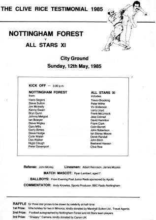 1984/85 Nottingham Forest v All Stars XI (Clive Rice Testimonial)