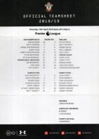 2018/19 Southampton v Wolverhampton Wanderers Good condition teamsheet that has been folded